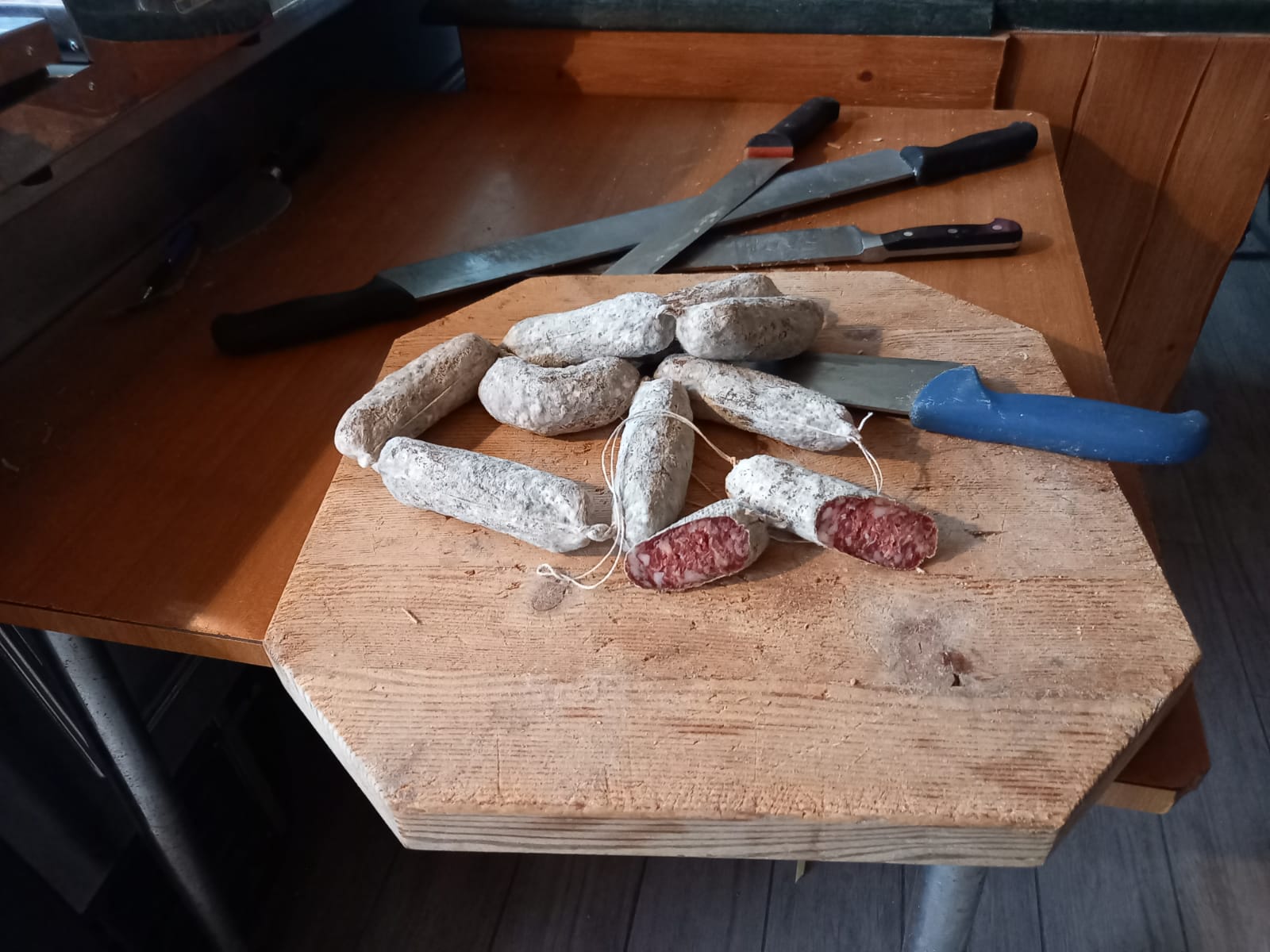 Cacciatorini magri fila da 6 pcs circa 0,5 kg/1 kg. Stagionatura media dal gusto delicato. Prezzo e € 26 al kg.