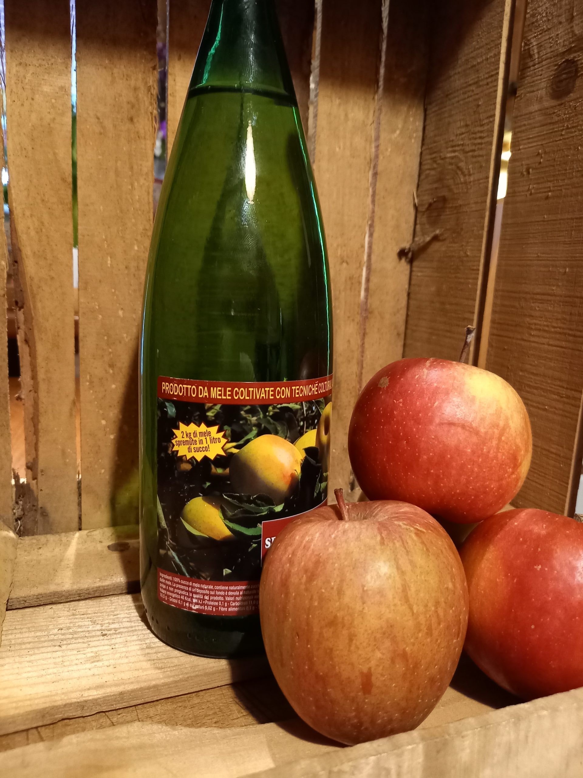 Succo di mela 100% valtellinese senza zuccheri aggiunti, in bottiglia di vetro 1 L.